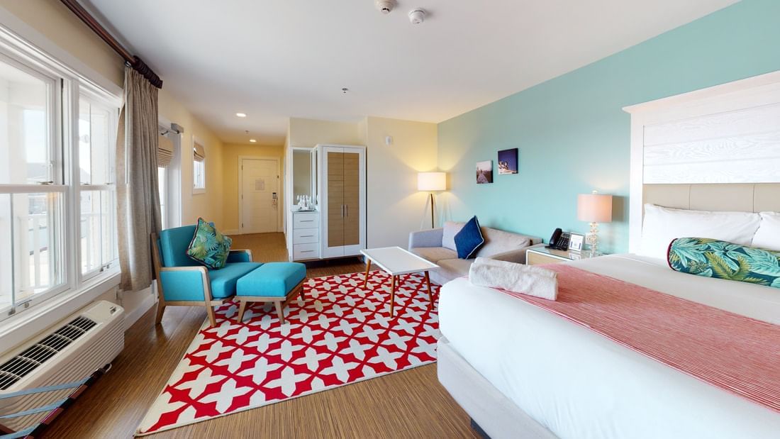Our comfortable 392-square-foot ocean view king rooms are furnished with a Simmons Beautyrest Westbury Plush King bed, a queen Luonto sleeper sofa and a spa-like glass shower.